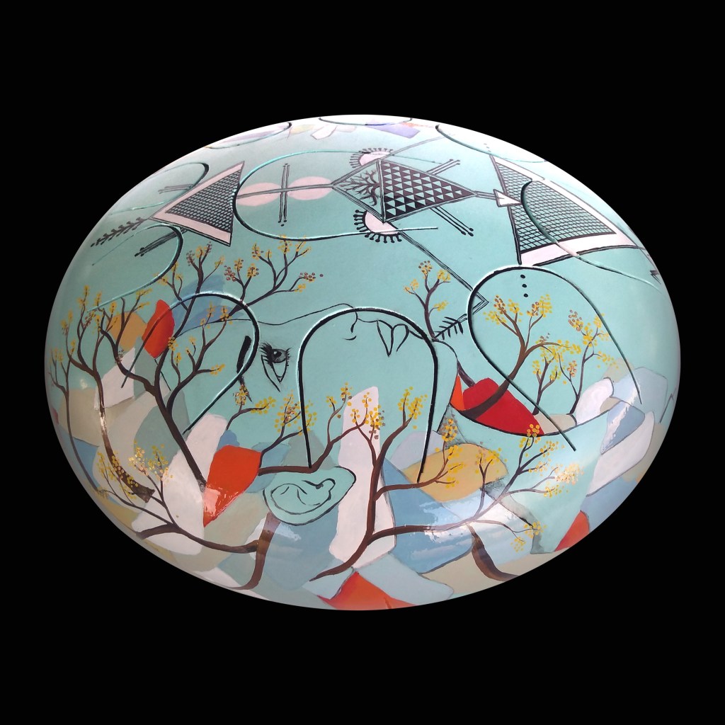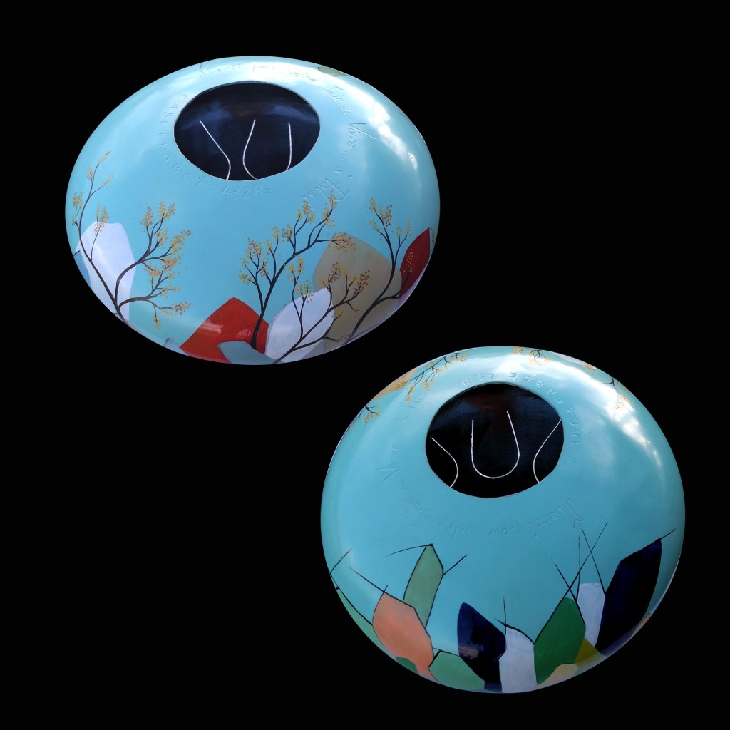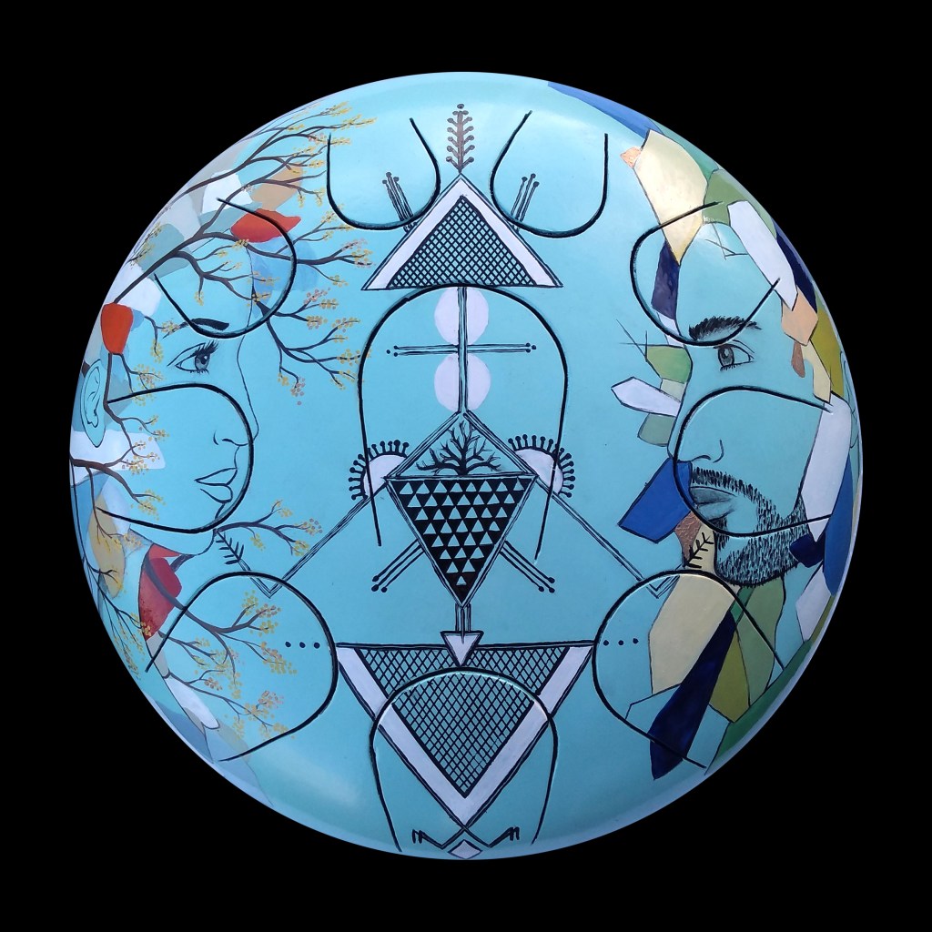 Hank drum à destination de Palat, France, motif du peuple Berbère qui unit le masculin et le féminin en présence de la nature… Gravure personnalisée.